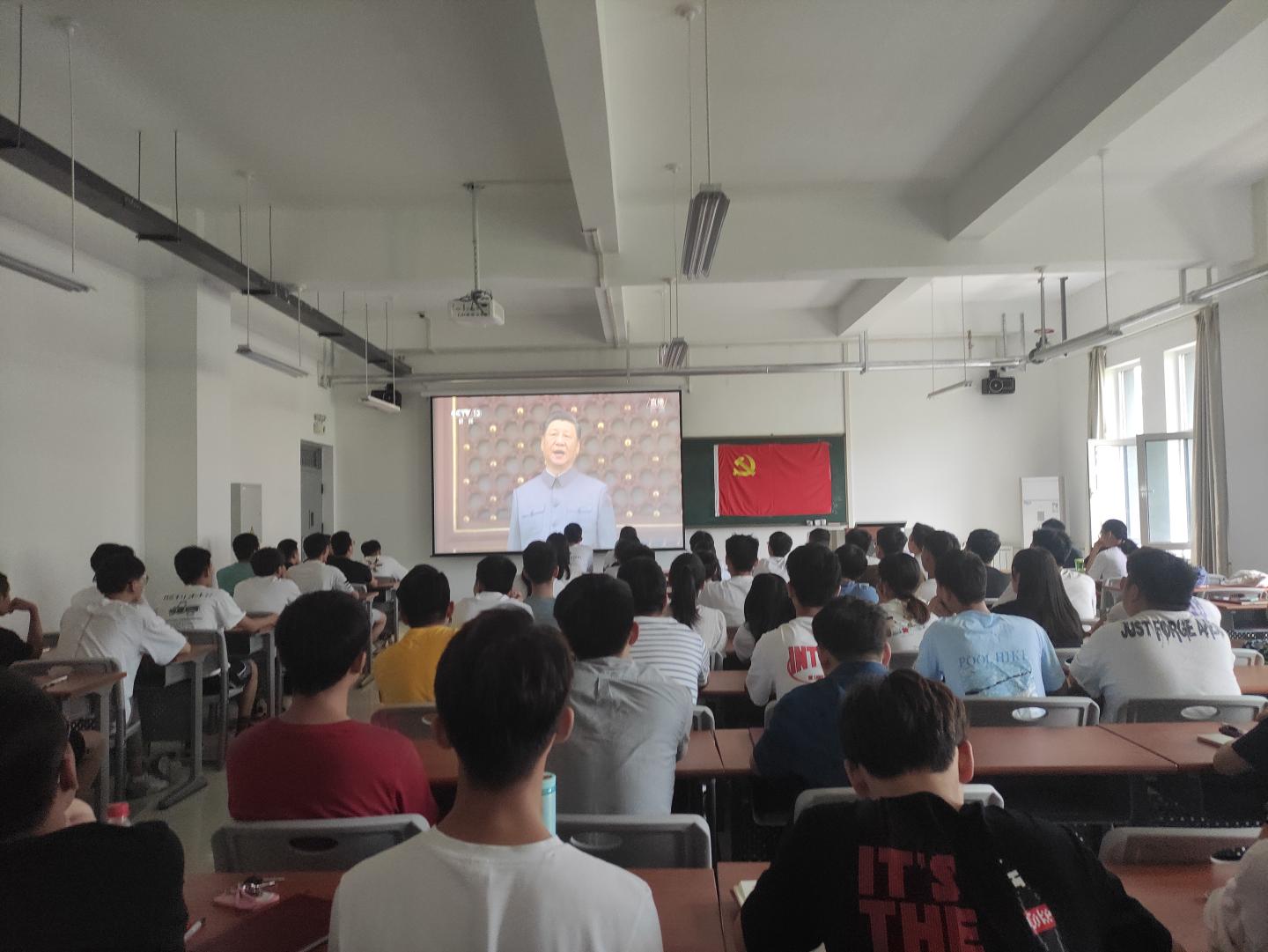 根据党总支统一安排,7月1日上午8:00,公司师生党员分别在丹江校区3-306、3-105两个会场收看了庆祝建党100周年盛典仪式和习近平总书记在七一大会上的重要讲话。全体师生党员参加了本次观看活动。
