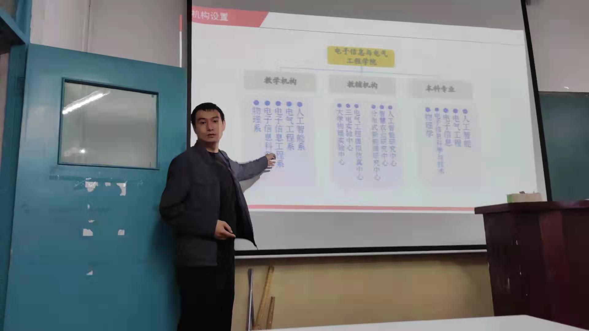 会上,电气系主任张商州、物理系主任史军辉、电科系主任何建强、智能系主任刘皎分别以“如何读大学”为主题,从普及教育、我的大学、我的专业、如何面对等四个方面对各专业2021级新生进行阐释和引导教育。在我的专业介绍时,各系主任结合专业特色,重点介绍了本专业团队优势、专业结构、主干课程和未来的就业、研究方向等,使新生对本专业有了进一步的了解。