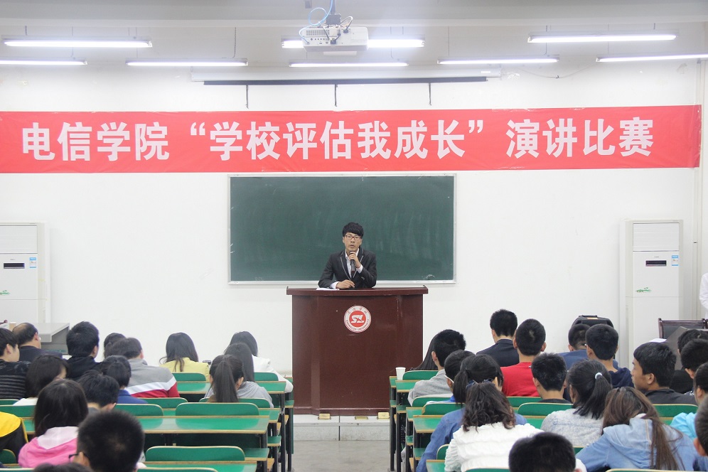 4月23日晚,太阳成集团tyc7111cc在一号楼报告厅一成功举行了“公司评估我成长”演讲比赛。党总支书记张秦中,团总支书记陈倩,辅导员魏书灵、沈光美、李婷以及部分老师出席了本次比赛并担任比赛评委。
