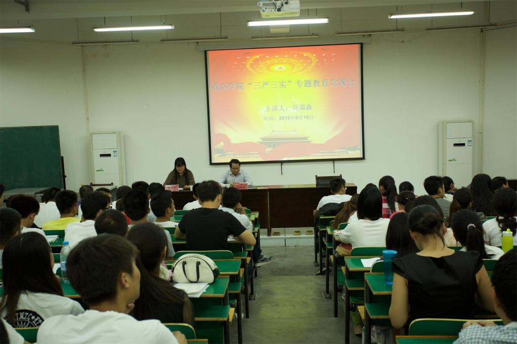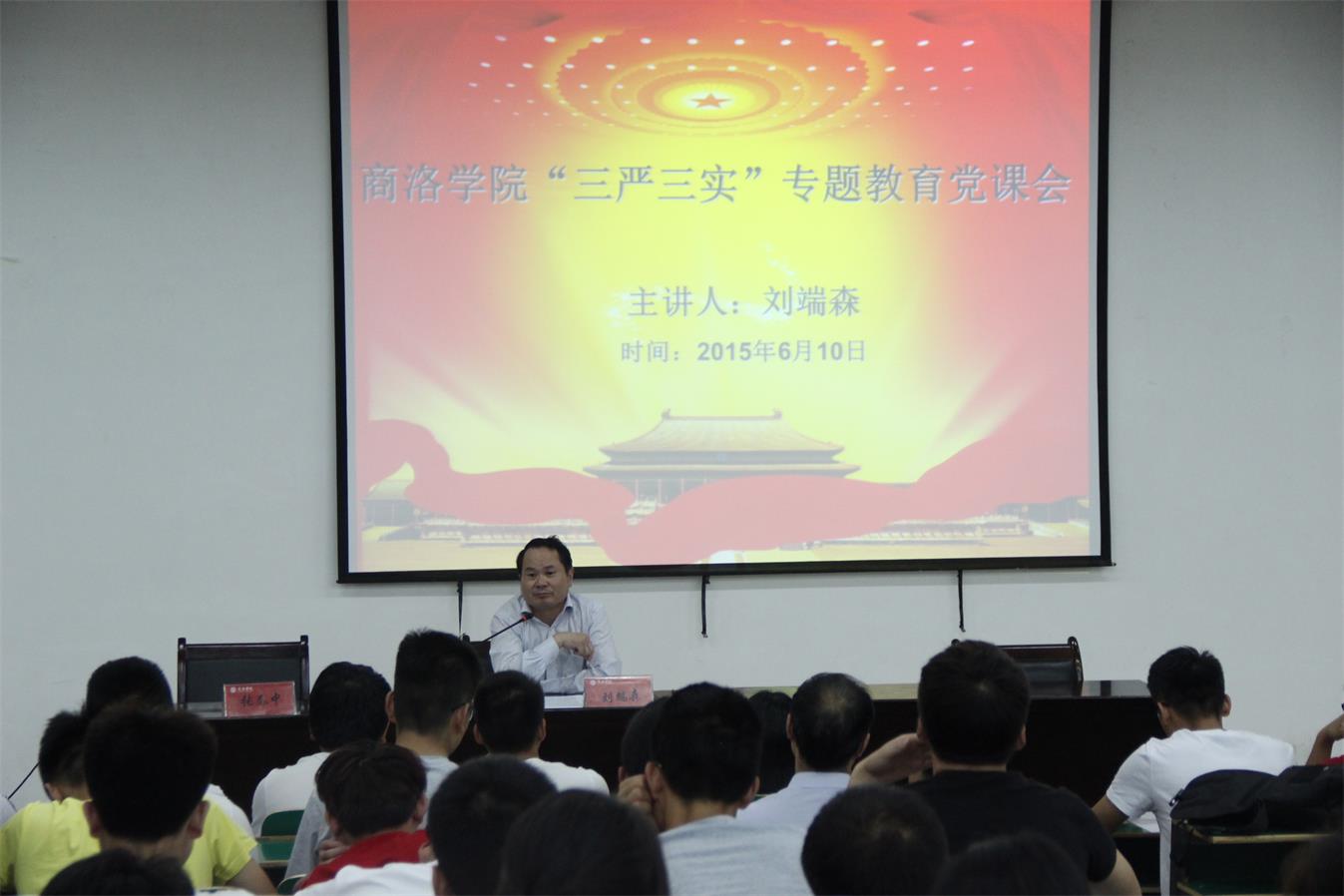 随着公司的“三严三实”专题教育的启动,按照商洛公司党委领导班子成员“三严三实”讲党课安排,6月10日下午,公司党委委员、教学评估中心主任刘端森在一号楼报告厅一主讲了题为《践行“三严三实”是党对我们的基本要求》的专题党课。太阳成集团tyc7111cc、化学工程与现代材料公司全体教职工党员以及员工党员、预备党员参加了本次大会。电子信息与电气工程公司党总支书记张秦中主持大会。