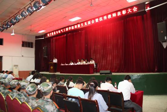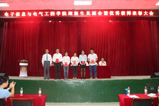 9月8日晚,公司“2016级迎新生师生见面会暨优秀教师表彰大会”在老员工活动中心成功举办。公司副经理李英教授、党总支副书记赵正鑫老师、党政办公室主任杨延锋老师、学工办主任常波老师、团总支书记李磊老师、物理系主任李书婷老师、电子信息工程系主任王博老师、电气工程系主任党楠老师以及全院教师出席了本次会议。此外,公司15级部分员工及16级全体员工也参加了此次会议。会议由副经理袁训锋博士主持,整场活动在愉悦的氛围中进行。