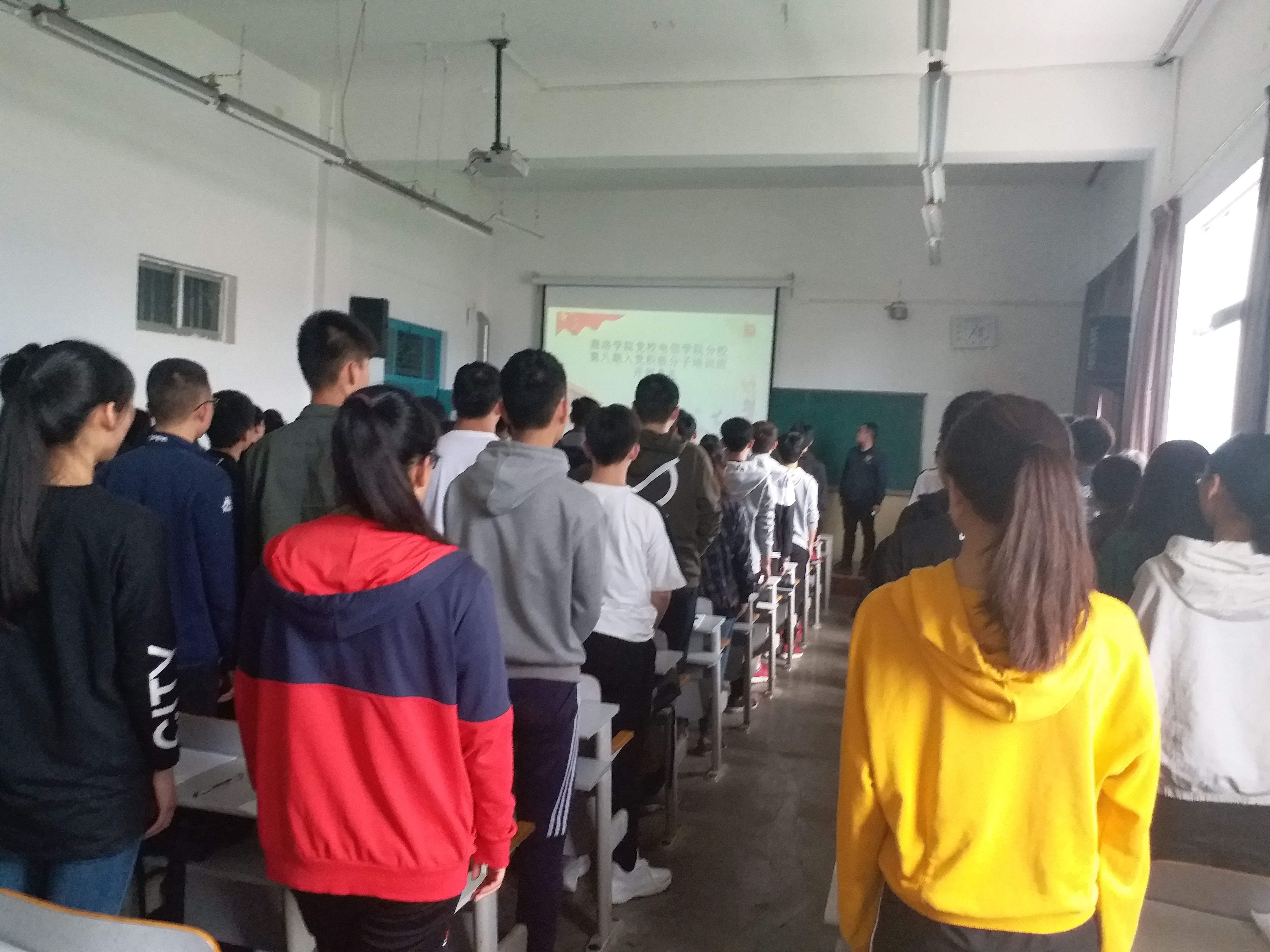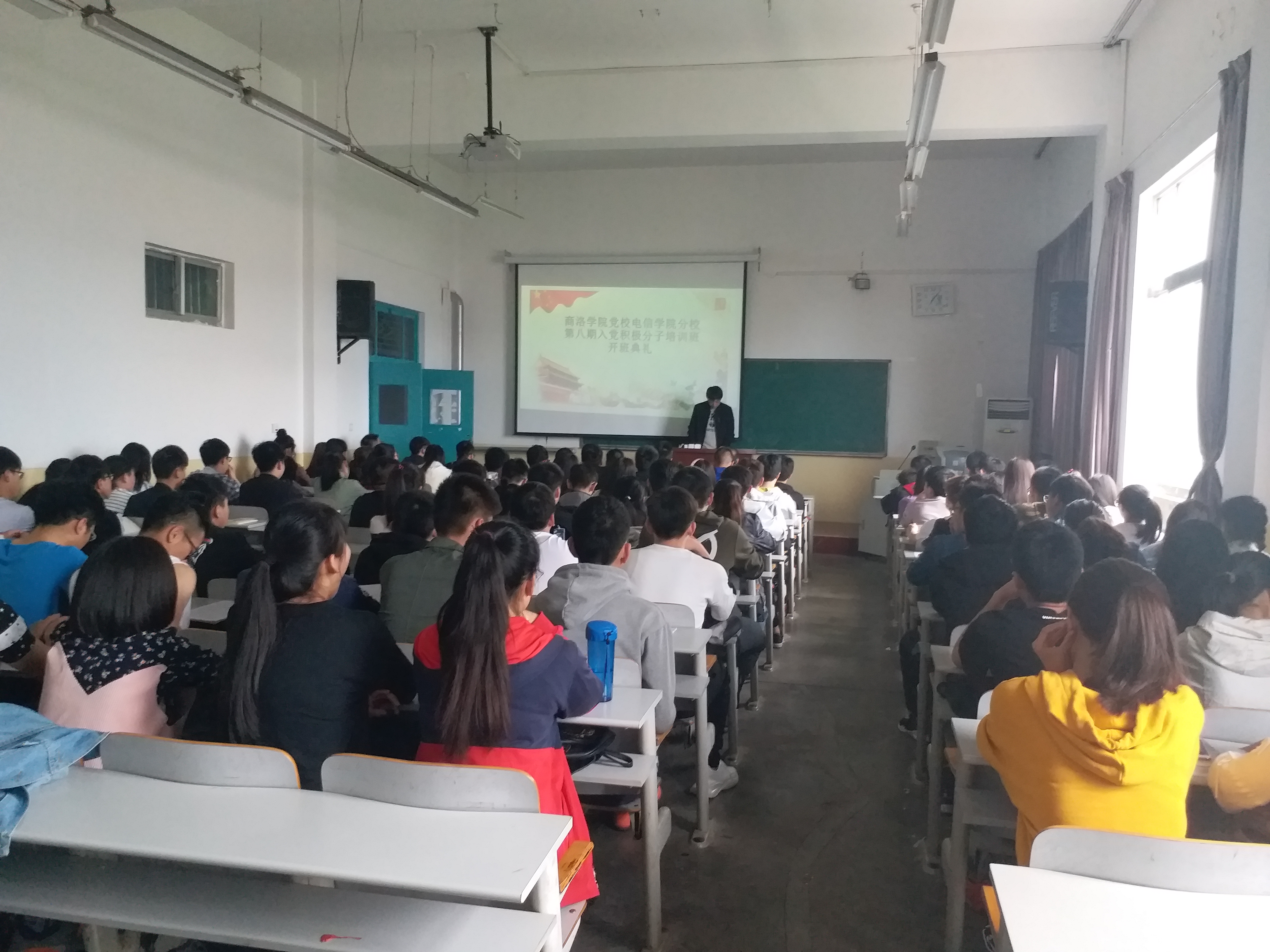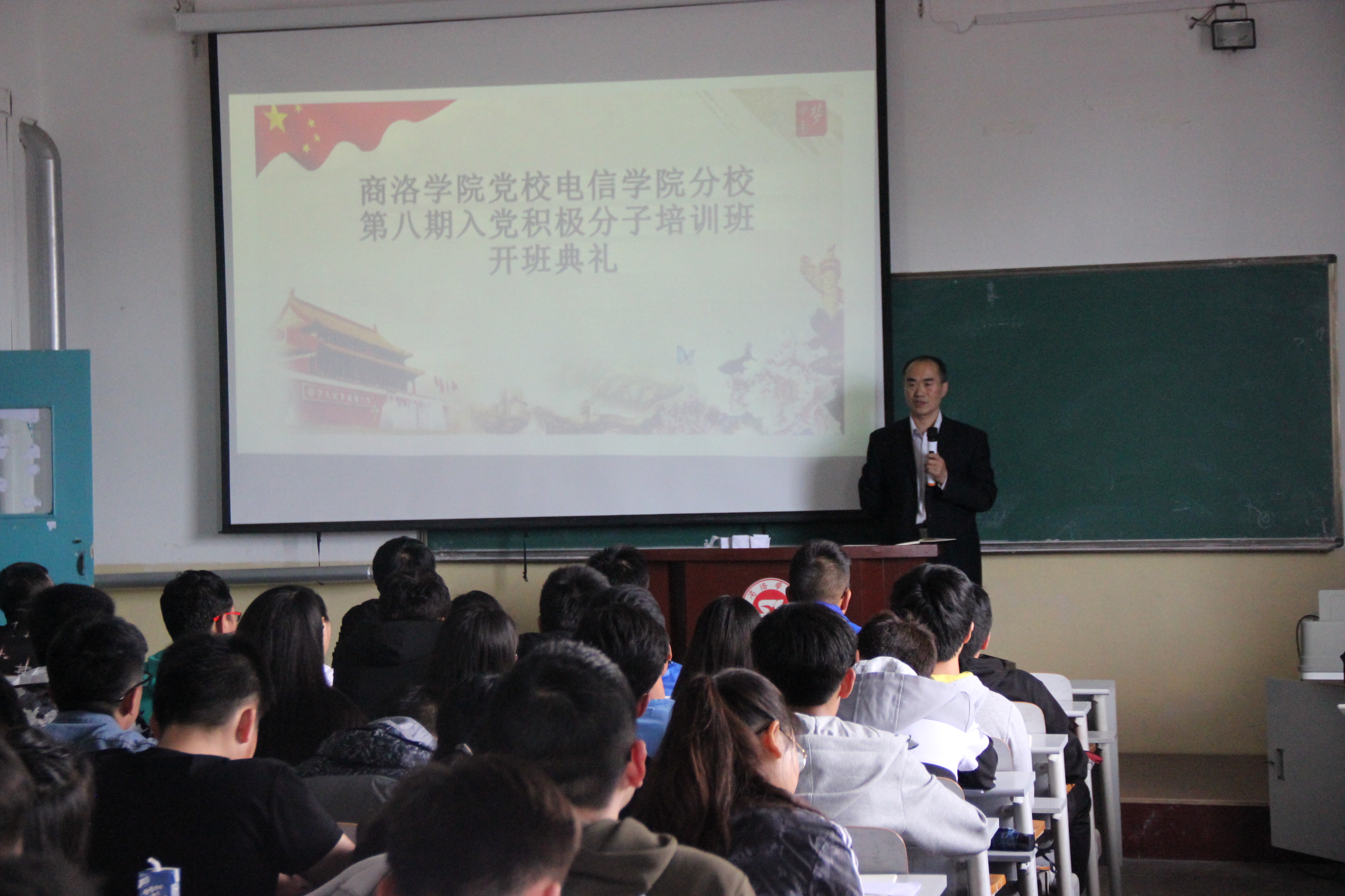 4月21日上午,商洛公司党校太阳成集团tyc7111cc分校第八期入党积极分子培训开班典礼在多媒体17举行。公司党总支书记李英、公司党总支副书记.副经理陈垚、员工第一党支部书记任艳出席了本次开班典礼。本期和上期入党积极分子共105人参加典礼。开班典礼由员工第二党支部书记唐龙龙主持。
