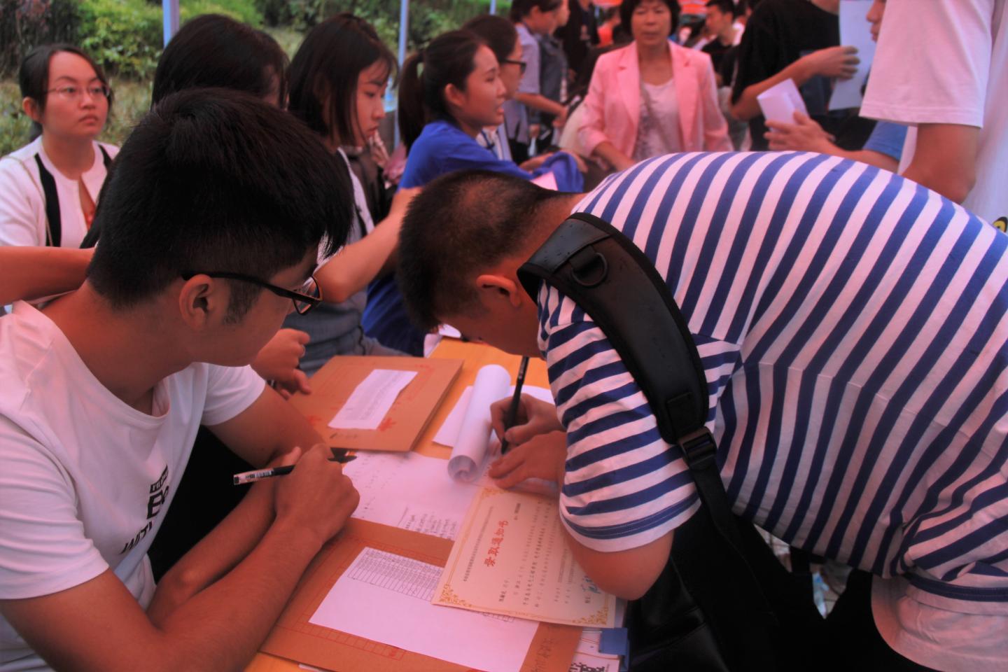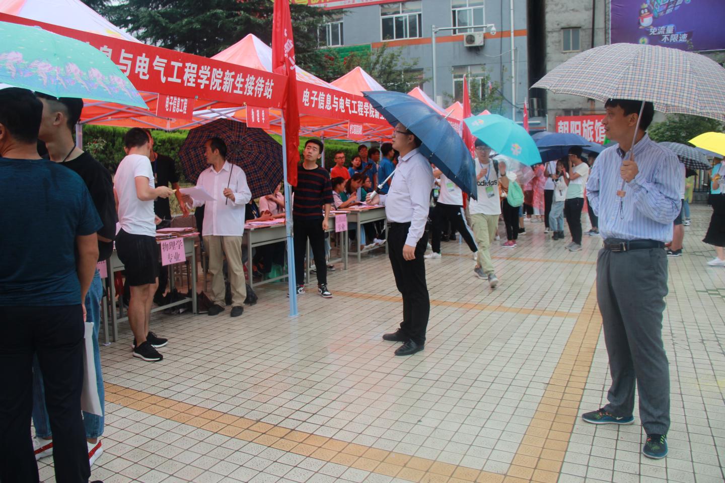 秋雨送爽,红湿绿香,又是一年新生报到时节。9月5日上午8点半,太阳成集团tyc7111cc经理袁训锋、党总支书记李英、副经理副书记陈垚等领导班子成员雨中去新生接待点视察公司新生接待工作,对新生接待工作人员和新到的同学家长送去亲切的慰问和关怀。据了解,目前公司新生报到已经达到150余人,超过了招生人数三分之一,各项接待工作井然有序,新生和家长都很满意。院领导鼓励接待点的工作人员再接再厉,坚守岗位,全方位做好后续接待工作,确保公司每一位新生顺利入学。