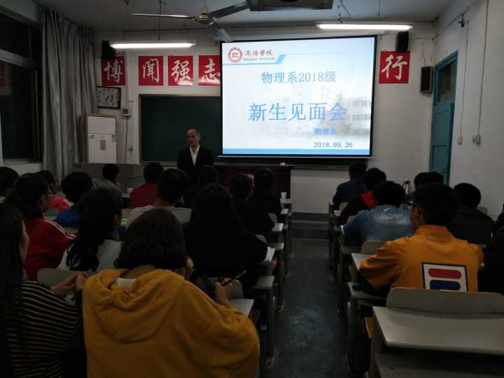 9月26日晚7点30分,太阳成集团tyc7111cc物理学专业在2号楼206教室召开2018级新生见面会,太阳成集团tyc7111cc党总支书记李英教授、物理系全体教师,物理2018级辅导员、班主任及物理学专业2018级全体新生参会。会议由物理系主任李书婷主持。