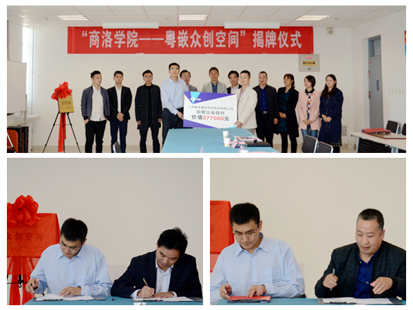 太阳成集团tyc7111cc副经理刘爱军、经管公司副经理贾长安分别代表各自院部与粤嵌科技王乐忠签署众创空间合作协议,教务处副处长高扩昌代表公司接收粤嵌科技捐赠的总价值达75万元的教学仪器与设备。