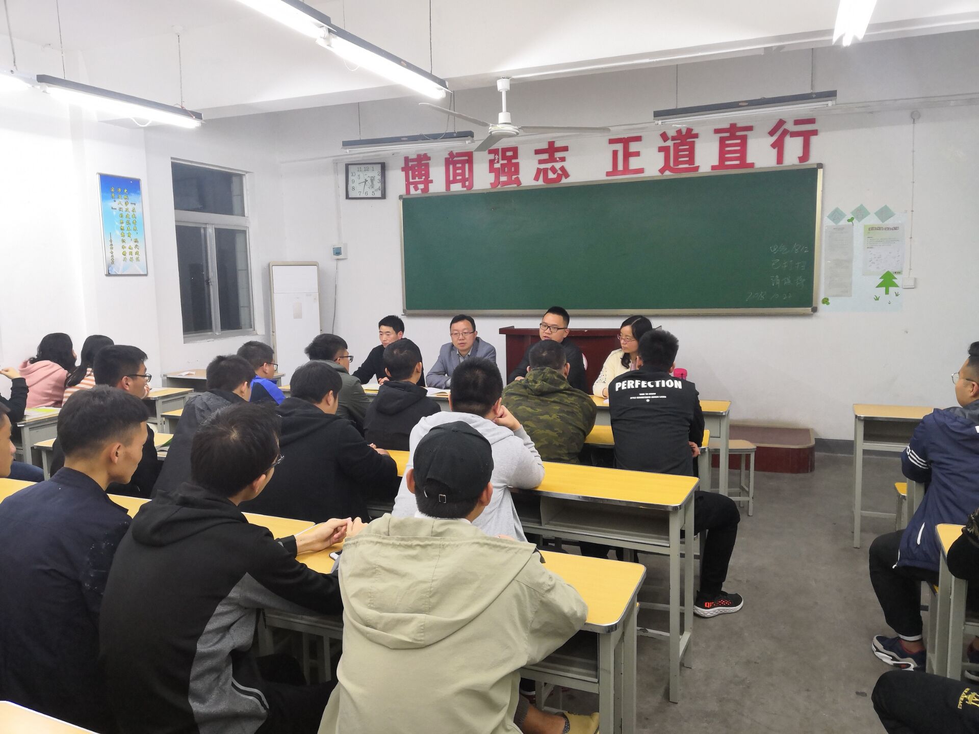 本次会议主要听取了电气1821班每位同学就入校近两个多月来在学习、生活等方面存在的问题,员工集中反应的问题有:个别同学属于跨专业升本,在专业课学习的过程中由于基础薄弱学习难度感觉较大;多数同学准备继续深造,但是对于考研的各项准备事宜尚不明确;上课教室人数较多,尽管老师讲的很认真但是靠后排员工听课效果不是很好等问题。