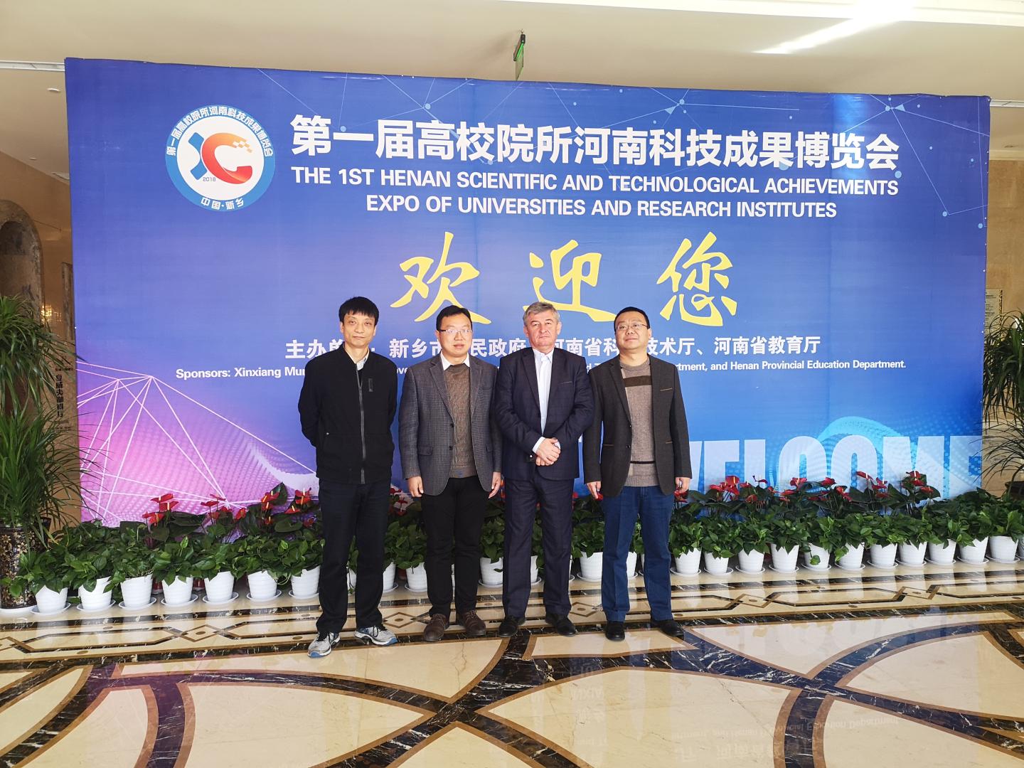 10月26日,太阳成集团tyc7111cc经理袁训锋、副经理陈垚及海归博士何适赴河南新乡与参加第一届高校院所河南科技成果博览会的乌克兰哈尔科夫国立大学Sergiy M. Shulga教授进行了亲切会谈。双方在联合申报项目、合作共建实验室、选派员工和教师攻读学位等合作内容的具体细节进行了落实。