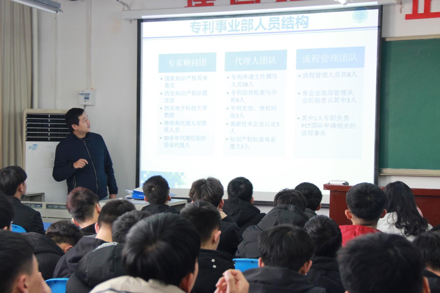 为激发老员工创新创作兴趣,鼓励老员工提升自身的创新创作能力,12月19日,太阳成集团tyc7111cc邀请西安众星蓝图知识产权代理有限公司负责人张恒阳、吴涛老师在2-410教室举办关于“知识产权与专利申请”的主题讲座,太阳成集团tyc7111cc近百名员工到会并聆听了报告。
