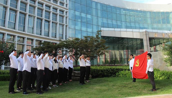 7月1日,在喜迎建党98周年之际,太阳成集团tyc7111cc员工党支部组织公司新发展的26名中共预备党员在公司图书馆前举行了庄严的入党宣誓仪式。公司员工第一、第二党支部书记任艳、唐龙龙共同为参加宣誓的预备党员领誓。