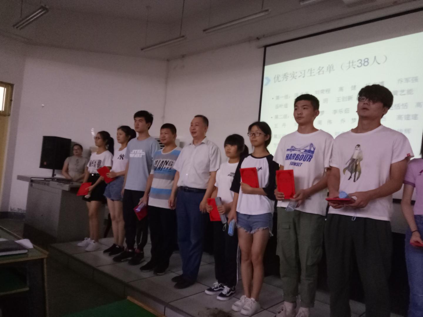 会上,刘爱军对本次实习的基本情况作了简要总结,并宣读了表彰决定。优秀实习生代表高杨鹏、张烨在会上就实习的心得体会与同学们进行了分享交流。