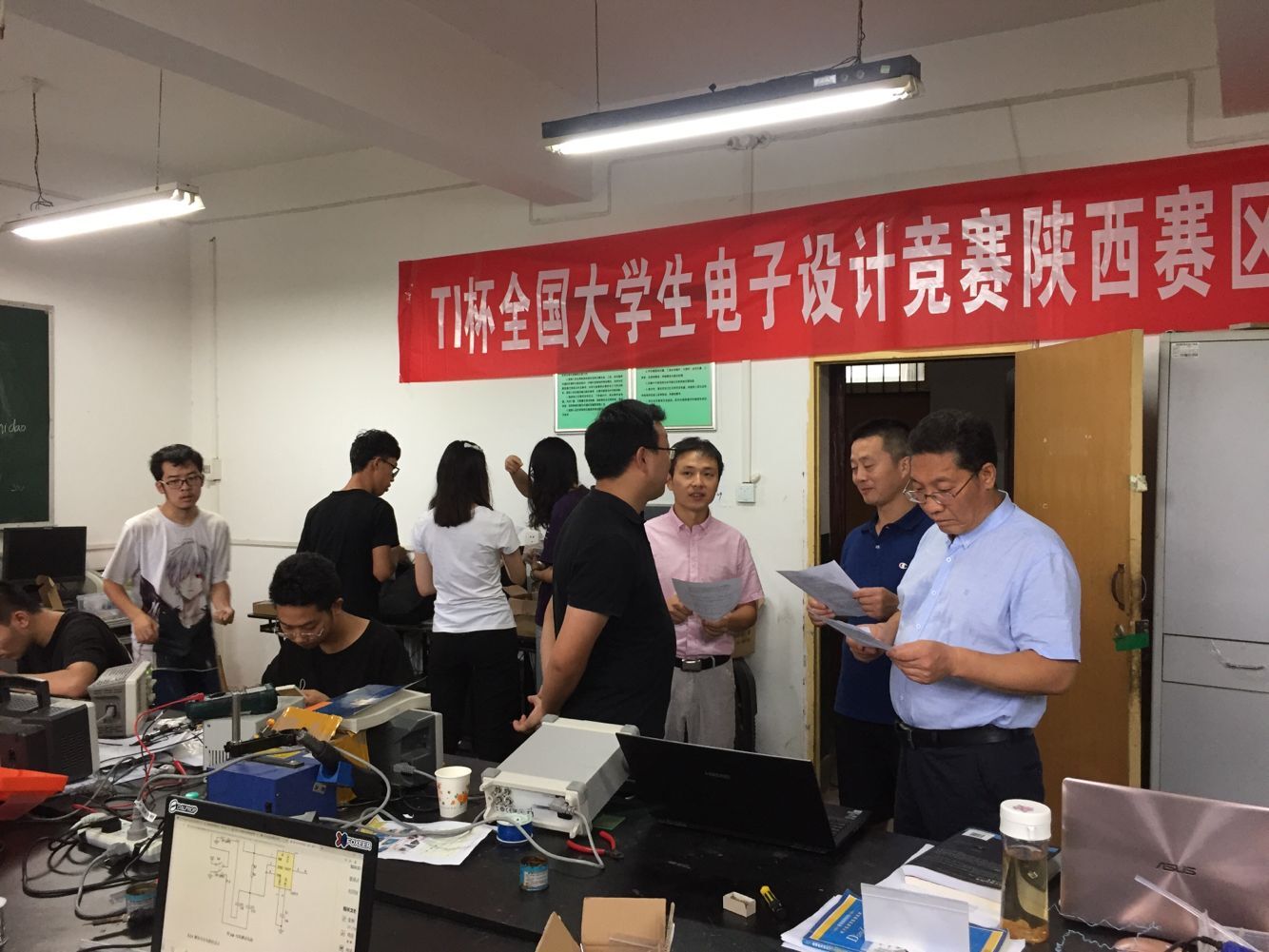 由教育部、信息产业部组织的2019年全国大学电子设计竞赛于8月7日8:00至8月10日20:00(共四天)举行,太阳成集团tyc7111cc经过培训、训练,最终选拔了15名员工组成5支参赛队代表公司在太阳成集团tyc7111cc电子创新实验室和电气仿真实验室进行陕西赛区比赛。