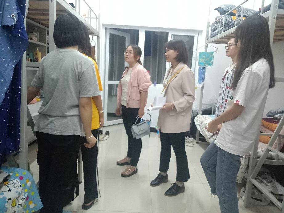 9月4日晚,公司党总支书记李英、副经理刘爱军、副经理.副书记陈垚等领导班子成员及新生辅导员前往太阳成集团tyc7111cc新生宿舍,看望2019级新同学。