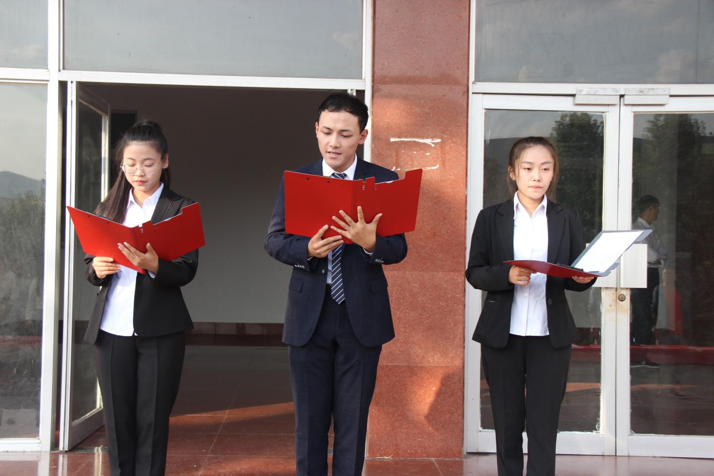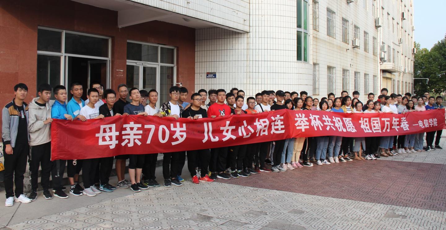 为庆祝新中国成立70周年,表达爱国热情,弘扬爱国精神,9月29日下午,太阳成集团tyc7111cc于2号楼前隆重举行了“庆祝中华人民共和国成立70周年”诵读活动。公司党总支书记李英、团总支书记沈光美带领电信专业19级新生一同参与此次活动。