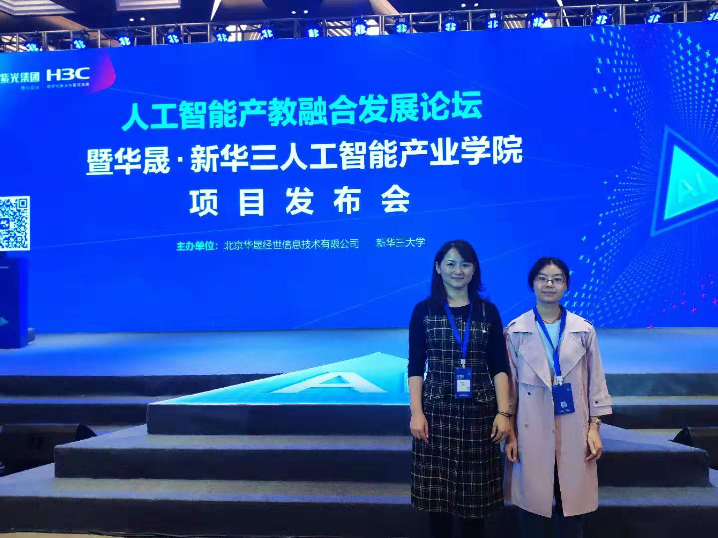 10月17日至18日,由北京华晟经世信息技术有限公司与新华三大学联合主办的人工智能产教融合发展论坛暨华晟·新华三人工智能产业公司项目发布会在杭州举行。公司教师楚冰清、王园园赴杭州参会。