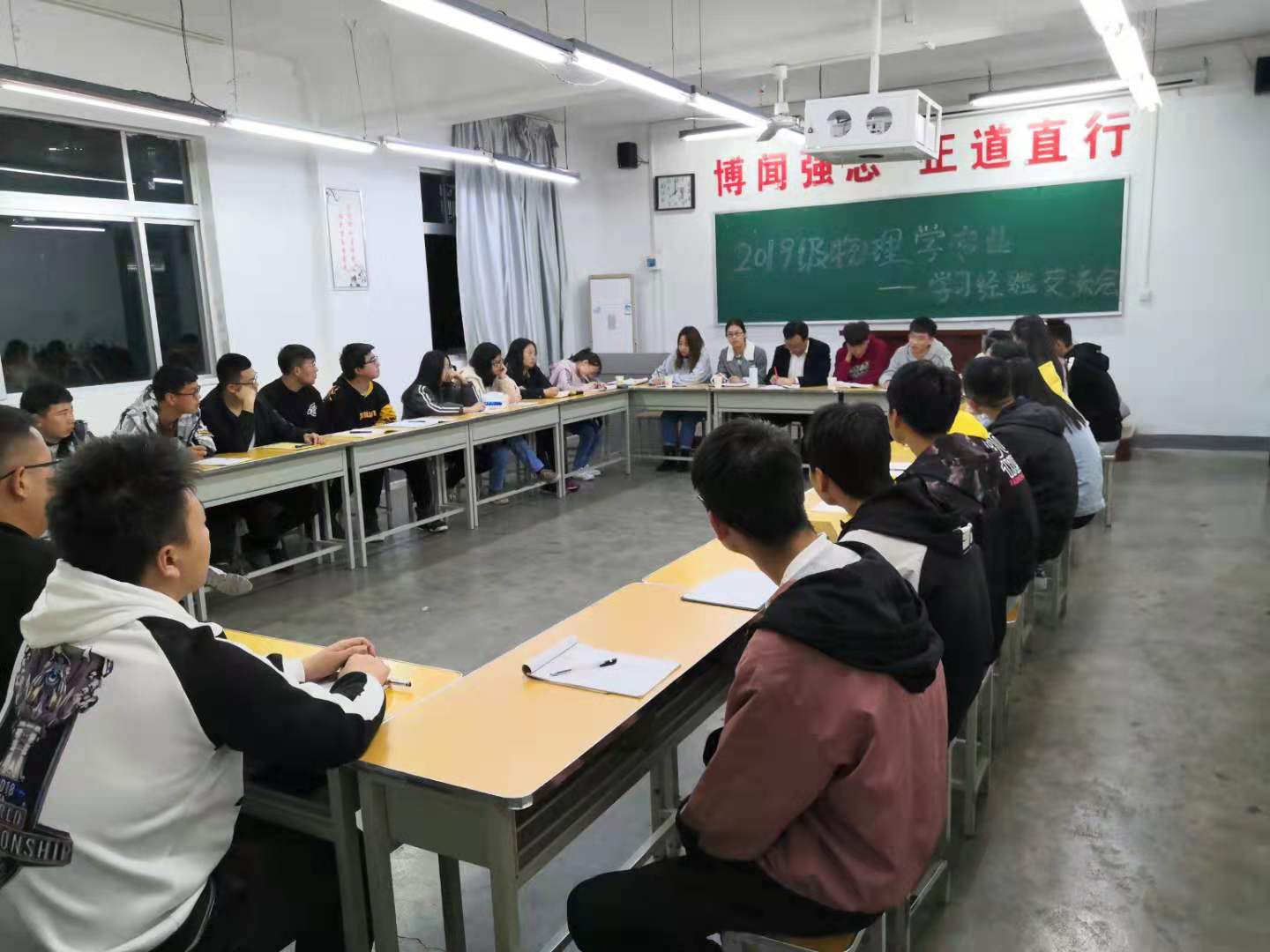为提高教学质量、促进我系新生快速融入老员工活,掌握大学学习方法,按照党总支统一安排,11月5日晚,物理系在二号教学楼210教室召开了新生学习经验交流座谈会。太阳成集团tyc7111cc经理袁训锋出席本次会议。青年教师王换民,17级郭嘉妮、18级庞仟禧、谢庆华和周萃逍4位高年级员工代表及物理1901班全体员工参加了座谈会。会议由班主任李丽君老师主持。