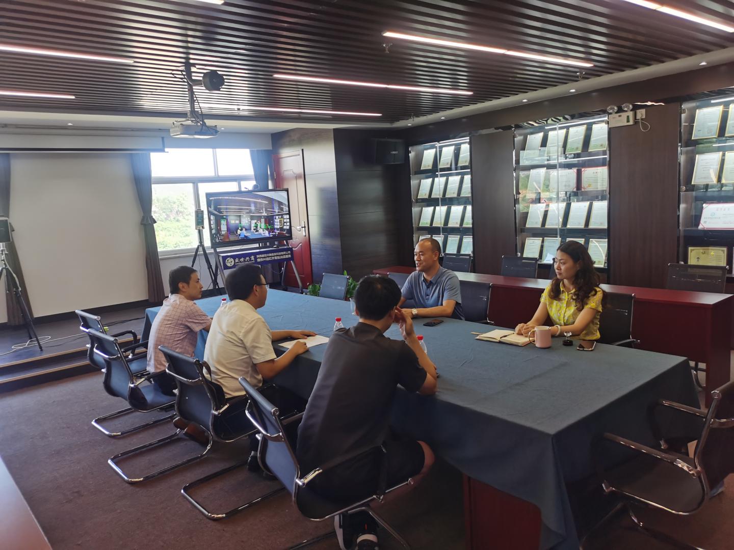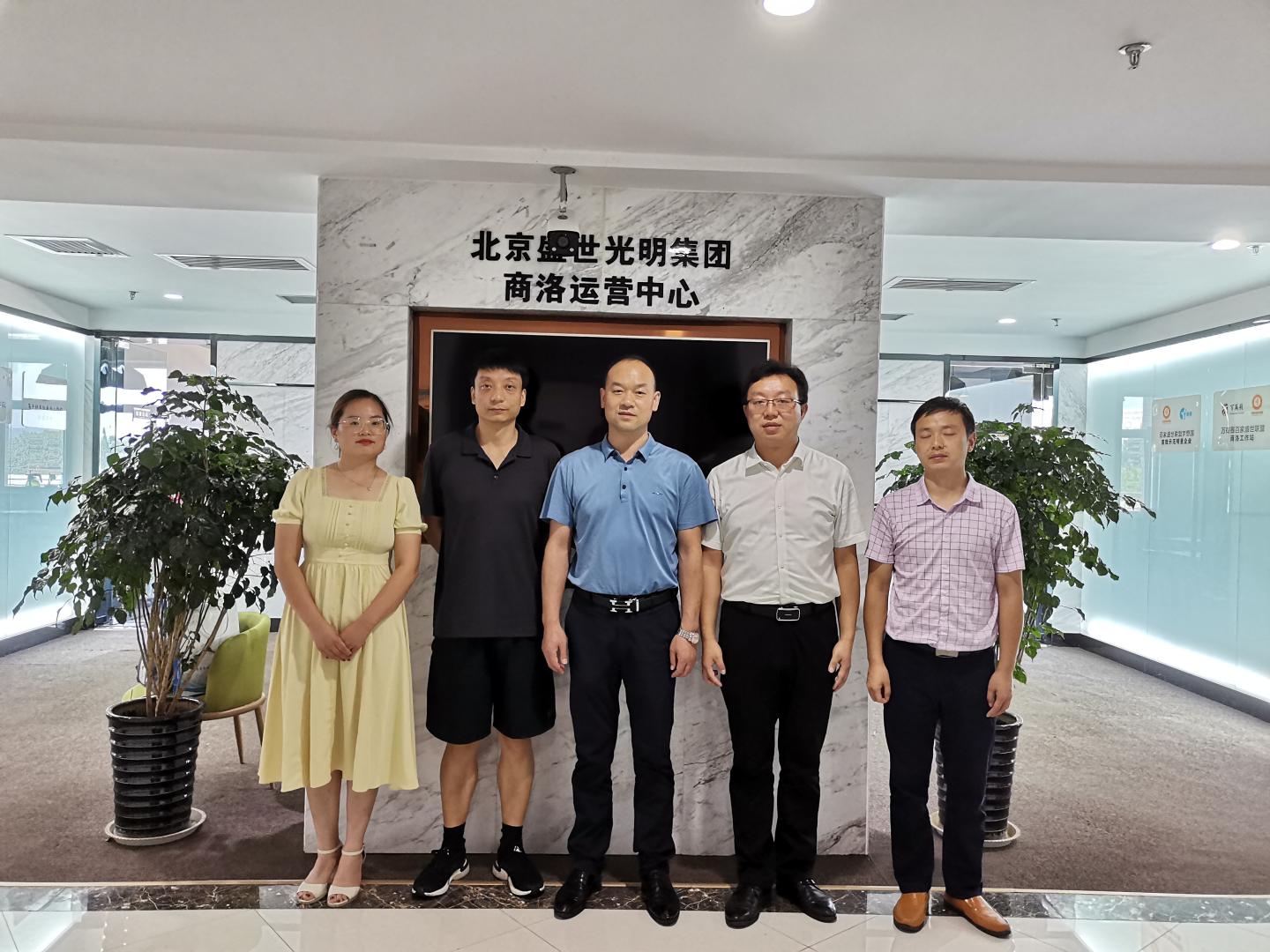 8月10日,太阳成集团tyc7111cc经理袁训锋、副经理陈垚、电科系主任何建强及青年教师刘皎一行赴陕西盛世兴商信息科技有限公司调研洽谈校企合作。盛世兴商总经理王小文、副经理王晔桐热情接待了来访教师。