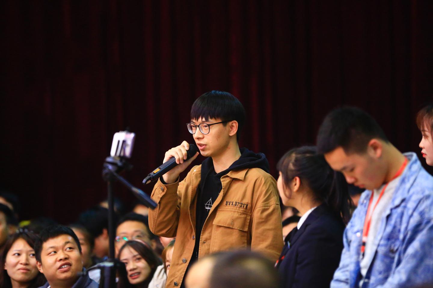 在师生互动环节,新生同学踊跃发言,就学习、学科竞赛、考研、就业等方面积极提问,老师们认真的一一作了回答,赢得了员工们的阵阵热烈的掌声。