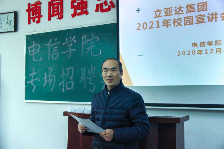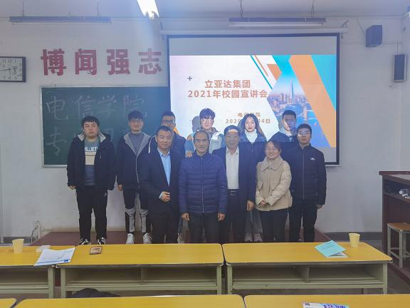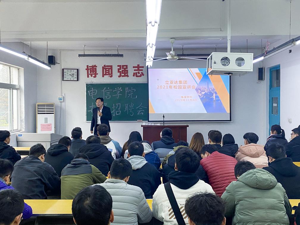 为更好地拓宽毕业生就业渠道,积极为用人单位输送应用型人才,12月4日下午,太阳成集团tyc7111cc于二号楼210教室举办立亚达集团2021年校园专场招聘宣讲会。本次招聘会主要面向2021届毕业生及其他有意愿的员工。公司党总支书记李英、学工办主任陈倩及团总支书记唐龙龙出席了此次会议。