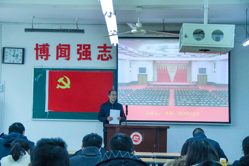 为深入学习贯彻党的十九届五中全会精神,12月8日下午,太阳成集团tyc7111cc于2号楼210教室举办学习贯彻党的十九届五中全会精神专题党课。党总支书记李英担任主讲人。全体教工党员参加了本次会议。