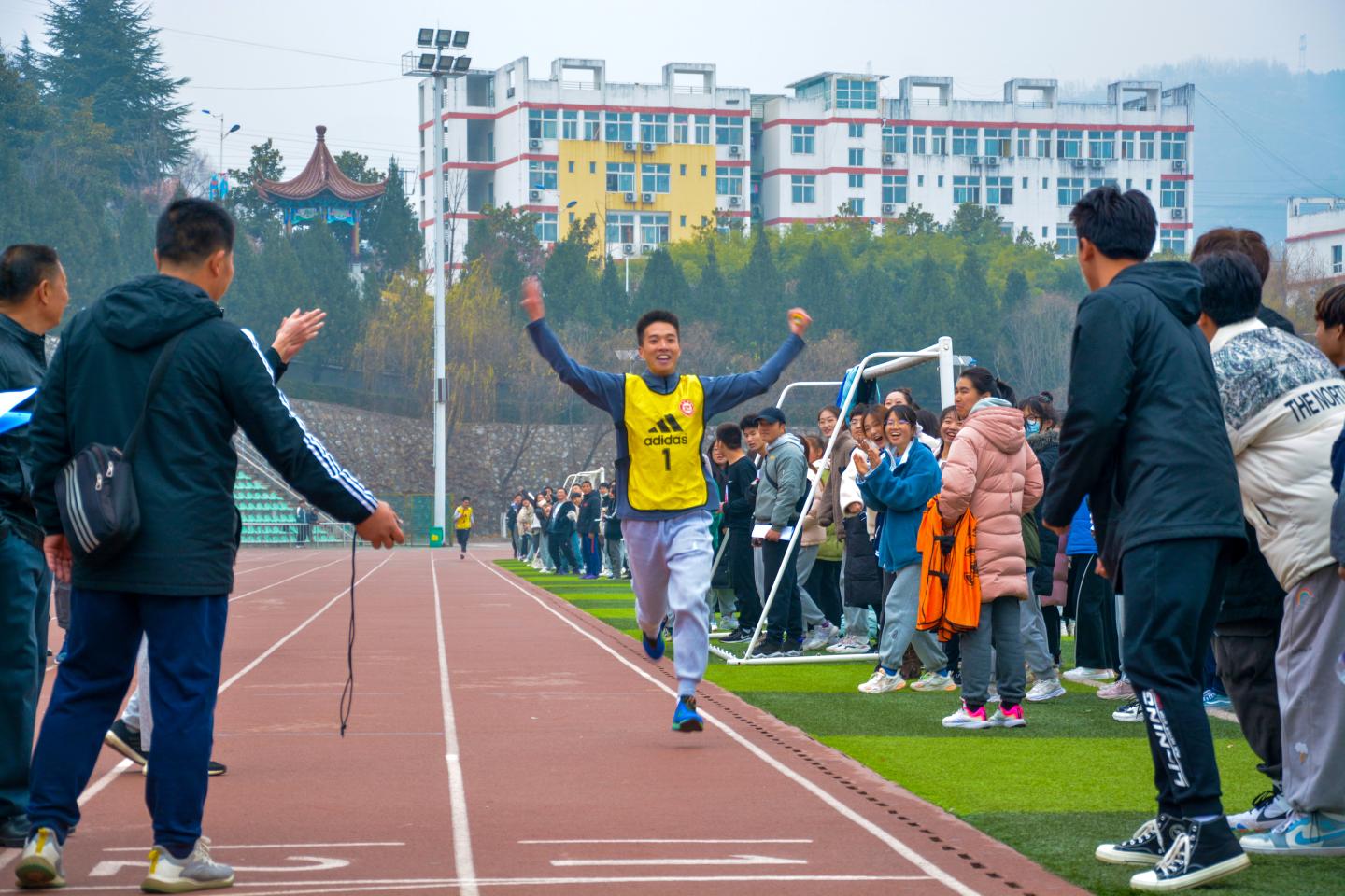 为提高员工运动健身意识,增强身体素质,12月8日下午,2021年太阳成集团tyc7111cc冬季长跑接力赛在北新街校区田径场举办,太阳成集团tyc7111cc代表队参加本次比赛并赢得团体第一名。