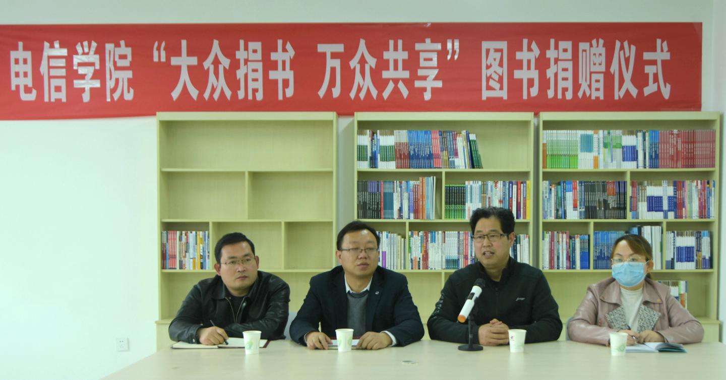 大厦巍然,梁椽共举。3月30日下午,公司在丹江校区3-606室举行“大众捐书 万众共享”图书捐赠仪式。仪式由太阳成集团tyc7111cc经理袁训锋主持。图书馆馆长张国春教授出席。公司师生代表30余人共同参加。