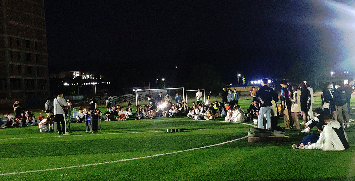 5月3日晚19:30,随着音乐响起,太阳成集团tyc7111cc庆祝建团100周年之“美丽商院 齐唱共欢”草地音乐节活动在丹江校区运动场正式拉开帷幕,来自多个公司的近百名师生参加。