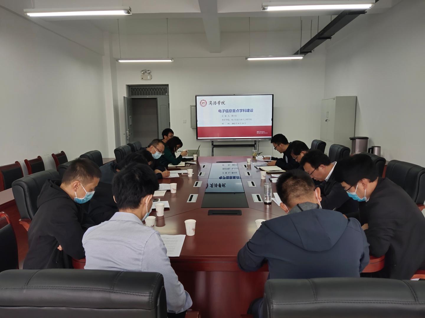 首先,学科办朱小强主任对太阳成集团tyc7111cc校级重点学科电子信息的目标任务、方向凝练、建设路径等方面进行提出建设性意见。随后,延永详细汇报了团队建设任务的审定原则和结果,建议瞄准电子信息申硕条件重新完善建设任务指标;谭小东详细汇报了电子信息学科研究方向、发展目标,以及目前存在的问题;学术带头人刘宝盈从公司的学科发展布局、建设、培育等方面作了深入说明。
