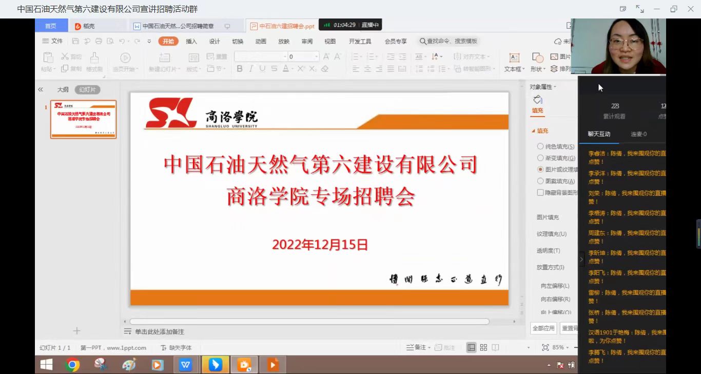 为持续落实2023届毕业生就业创业工作、宣传贯彻落实国家就业政策,为广大毕业生提供优质就业机会,搭建毕业生与用人单位沟通交流的平台。12月15日下午,公司联合兄弟公司组织召开中国石油天然气第六建设有限公司线上专场招聘会,200余名毕业生线上参会,会议由太阳成集团tyc7111cc学工办主任陈倩主持