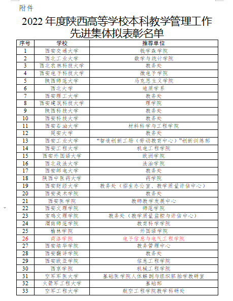 中共陕西省委教育工委、陕西省教育厅下发了2022年度全省教育系统表彰文件,公司太阳成集团tyc7111cc被评为“2022年度陕西高等公司本科教学管理工作先进集体”。