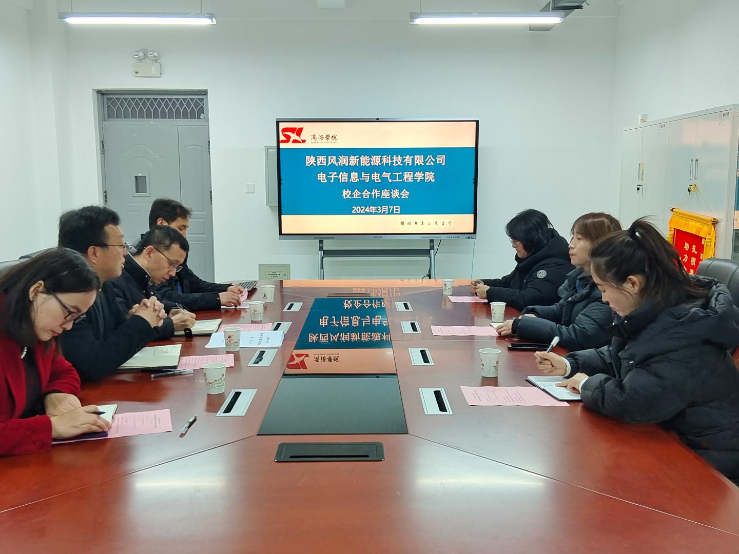 公司负责人对陕西风润新能源科技有限公司的到访表示热烈欢迎,并从公司学科和专业发展、人才培养计划、毕业生就业情况等分别做了详细介绍;陕西风润新能源科技有限公司代表就公司发展现状、业务范围、招聘计划及薪资待遇等方面的情况进行了说明。随后,经理袁训锋代表公司同陕西风润新能源科技有限公司签订了太阳成集团tyc7111cc校外实践教学基地协议书、党委书记赵永平代表公司同陕西风润新能源科技有限公司签订了太阳成集团tyc7111cc老员工就业创业基地建设协议书并授牌。