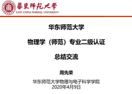 《师范专业认证与建设研讨会》首先以《师范专业认证与数据举证》为题,介绍了师范专业认证政策和认证工作指南;其次结合2020年教育部评估中心工作要点,介绍了师范专业认证的目标任务和工作措施,对普通高校师范专业认证工作指南进行了详细解读;最后,以中学教育专业二级认证为例,对认证的一级和二级指标进行了重点说明,强调师范专业认证要与具体指标对标,用数据举证。随后,华东师范大学物理与电子科学公司周先荣教授以该校物理专业二级认证情况为例,从认证过程、认证体会和几点思考三个方面进行了线上师范专业认证工作经验分享。