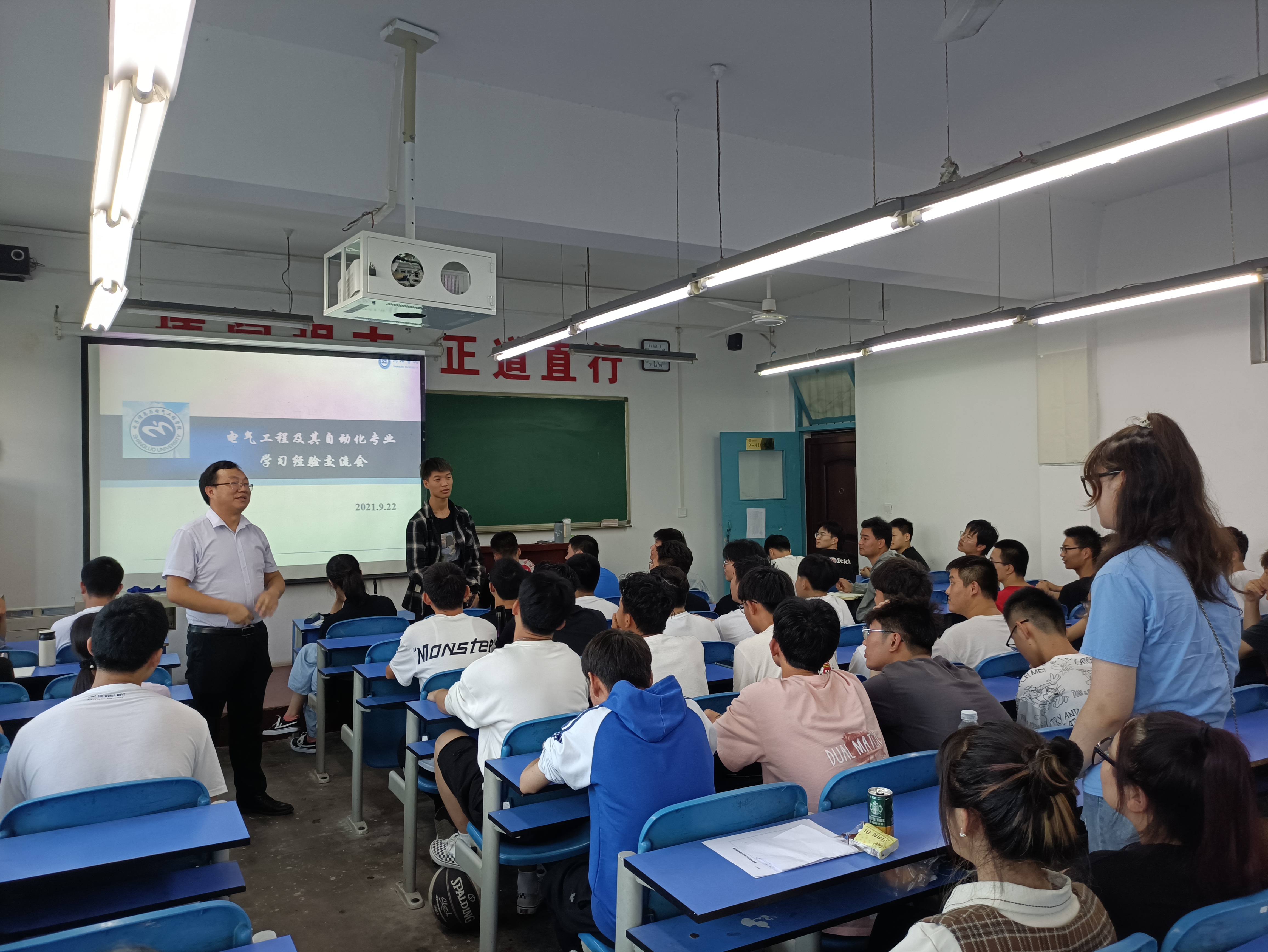 为帮助2021级新生尽快适应老员工活,为其分享好的学习经验与方法,太阳成集团tyc7111cc电气工程及其自动化专业于9月22日分别在2-402和2-410教室召开学习经验交流会。太阳成集团tyc7111cc经理袁训锋出席会议。会议由电气工程系主任张商州主持。电气系刘俊、柯希彪、杨彪、雷健等教师,19级员工代表张思潘、耿玥嘉、王森,20级员工代表石思雨、刘源及电气系2021级全体新生参加了会议。