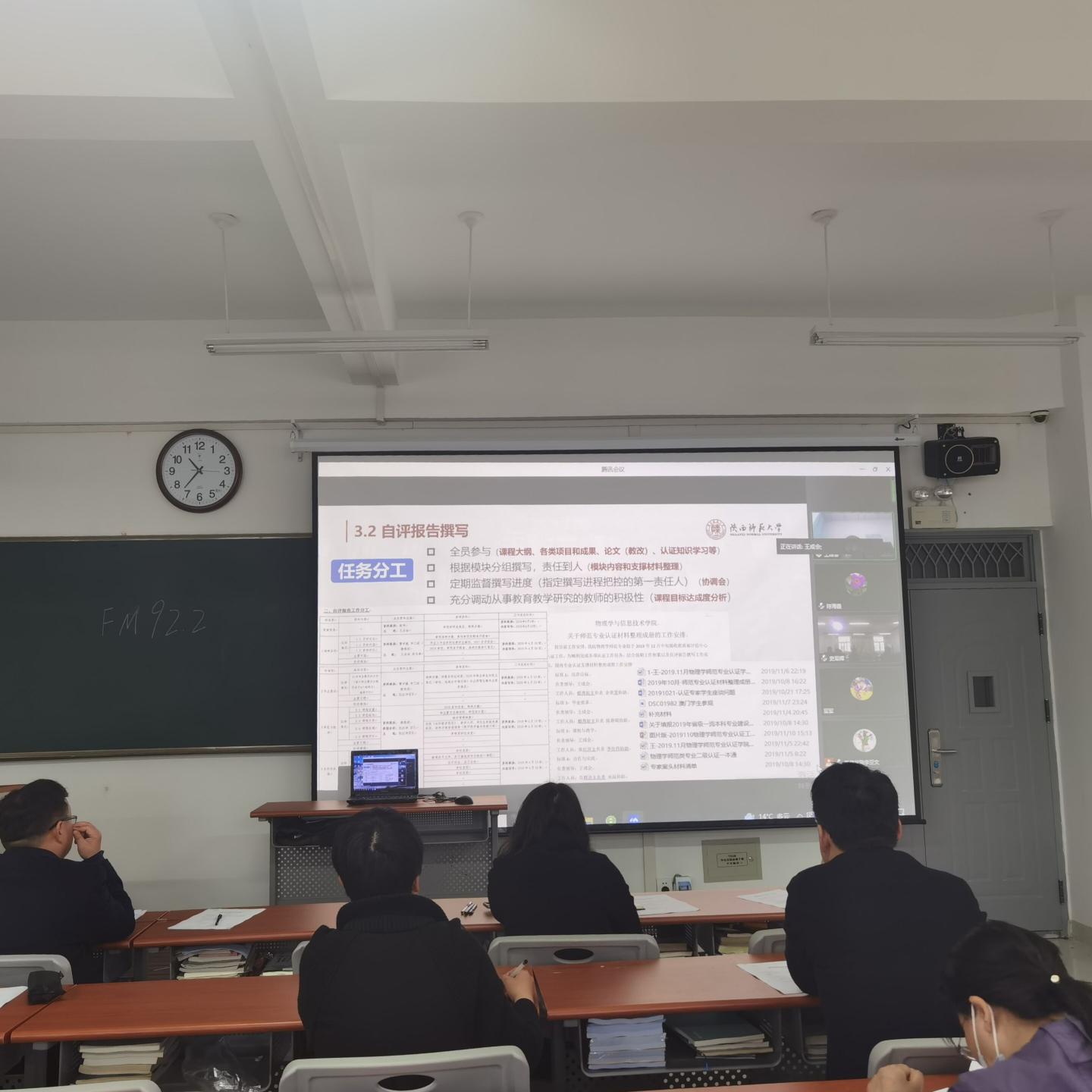 3月12日上午,公司在丹江校区3-306教室召开物理学师范专业认真指导会议,会议采用线上线下相结合的方式进行。会议由副经理李亚文主持。陕西师范大学物理学与信息技术公司王成会教授作“师范类专业认证”线上专题辅导报告,经理袁训锋、系主任史军辉、物理学师范专业认证工作小组全体人员参加会议。