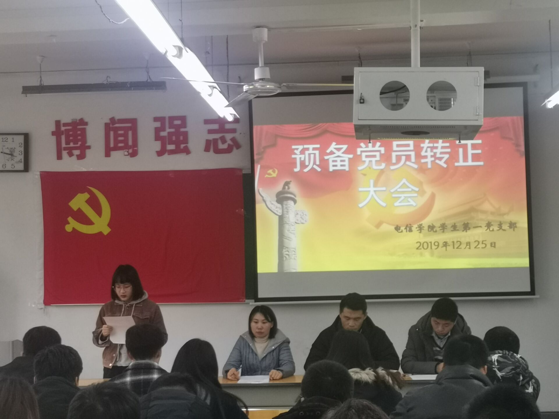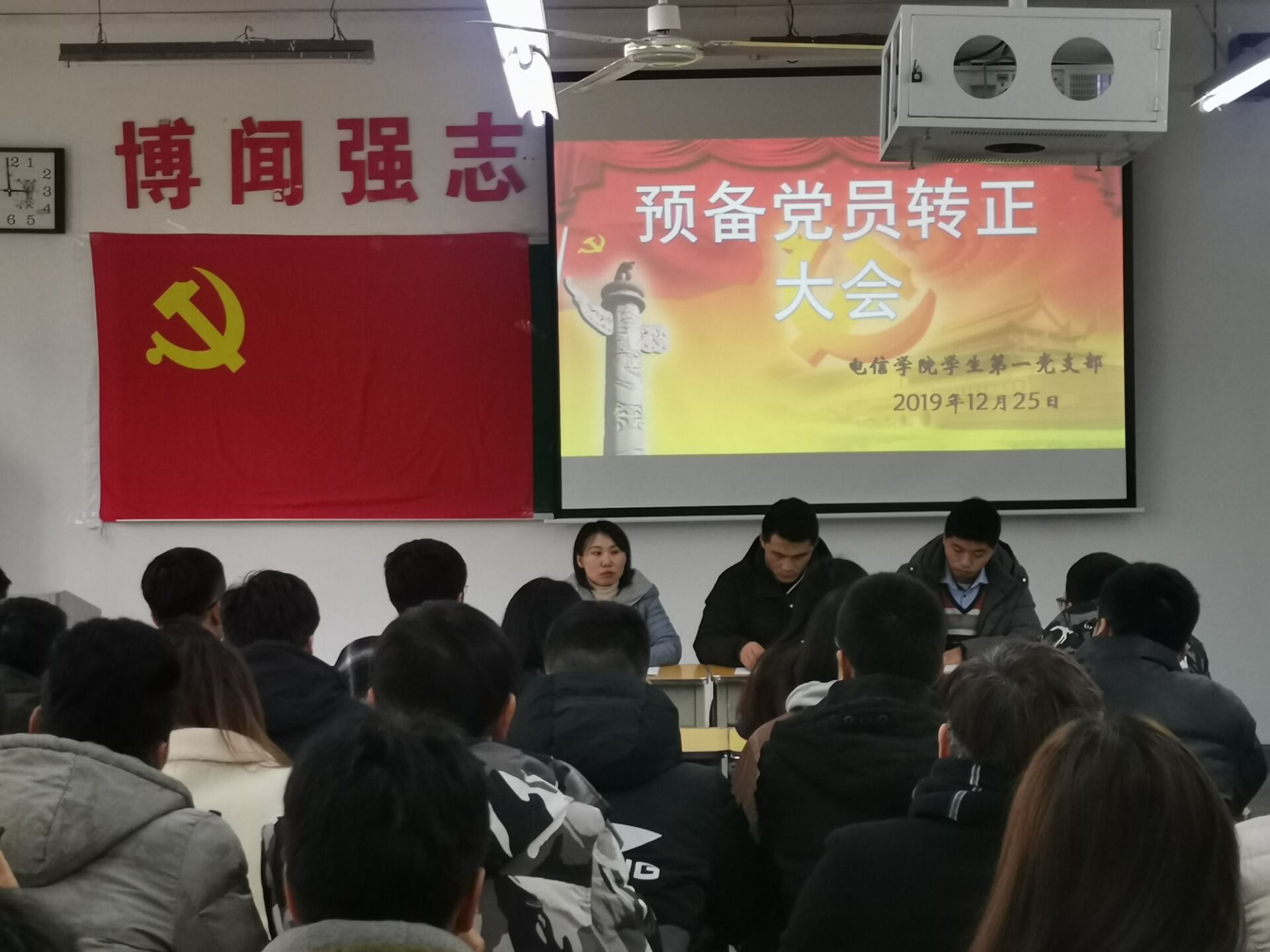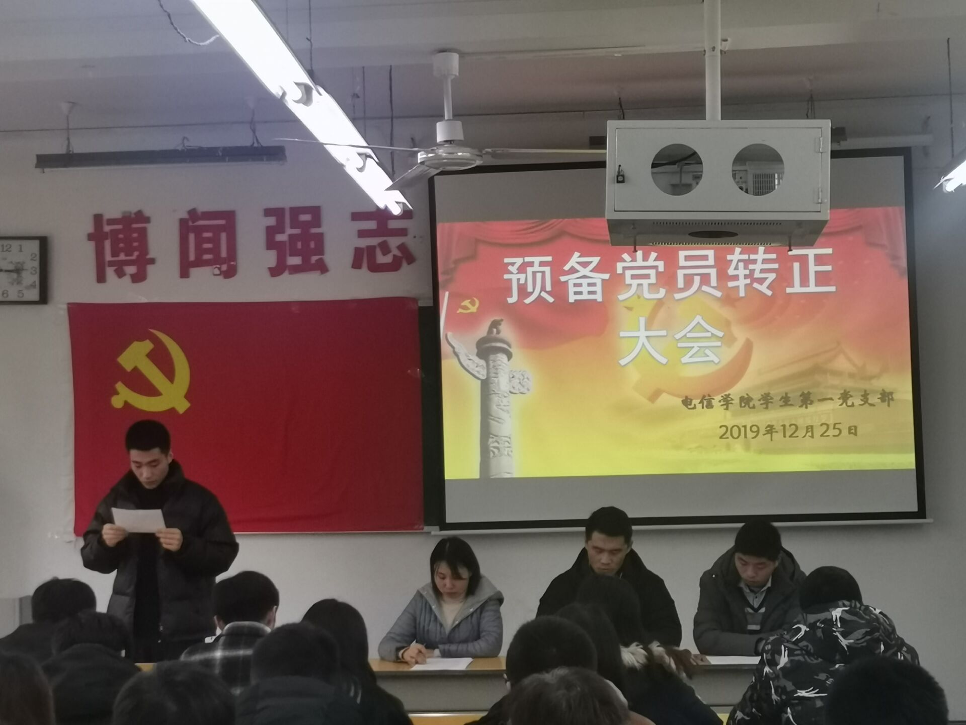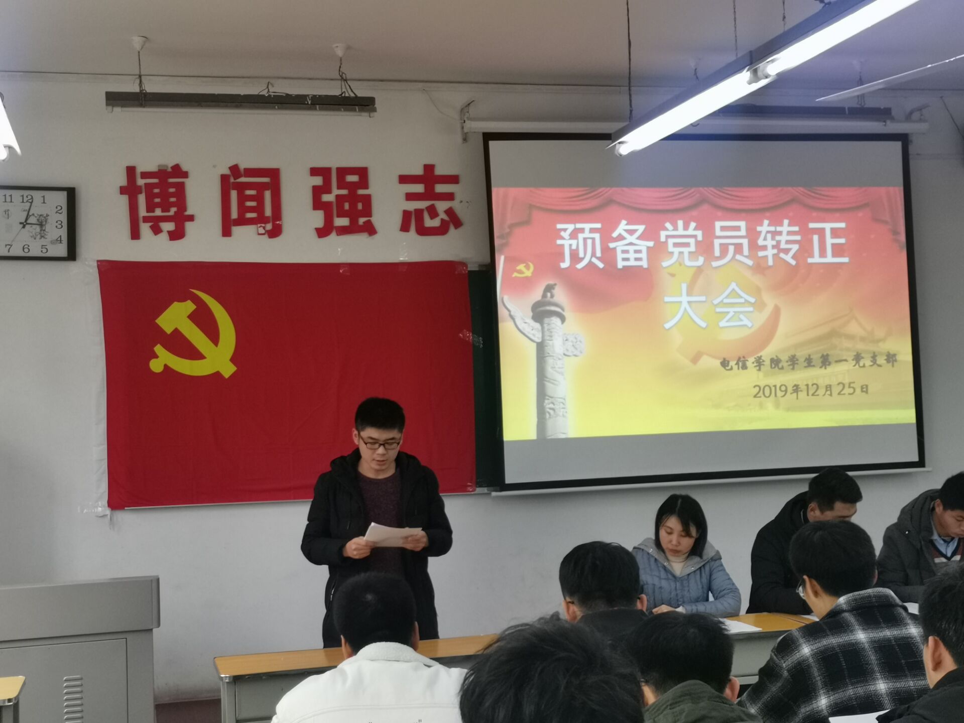 根据党员发展程序和计划安排,太阳成集团tyc7111cc员工第一党支部于12月15日在二号教学楼210教室召开了支部大会,讨论熊伟等6名预备党员转正事宜。大会由支部书记任艳主持。参会人员有党支部委员以及支部全体员工党员。