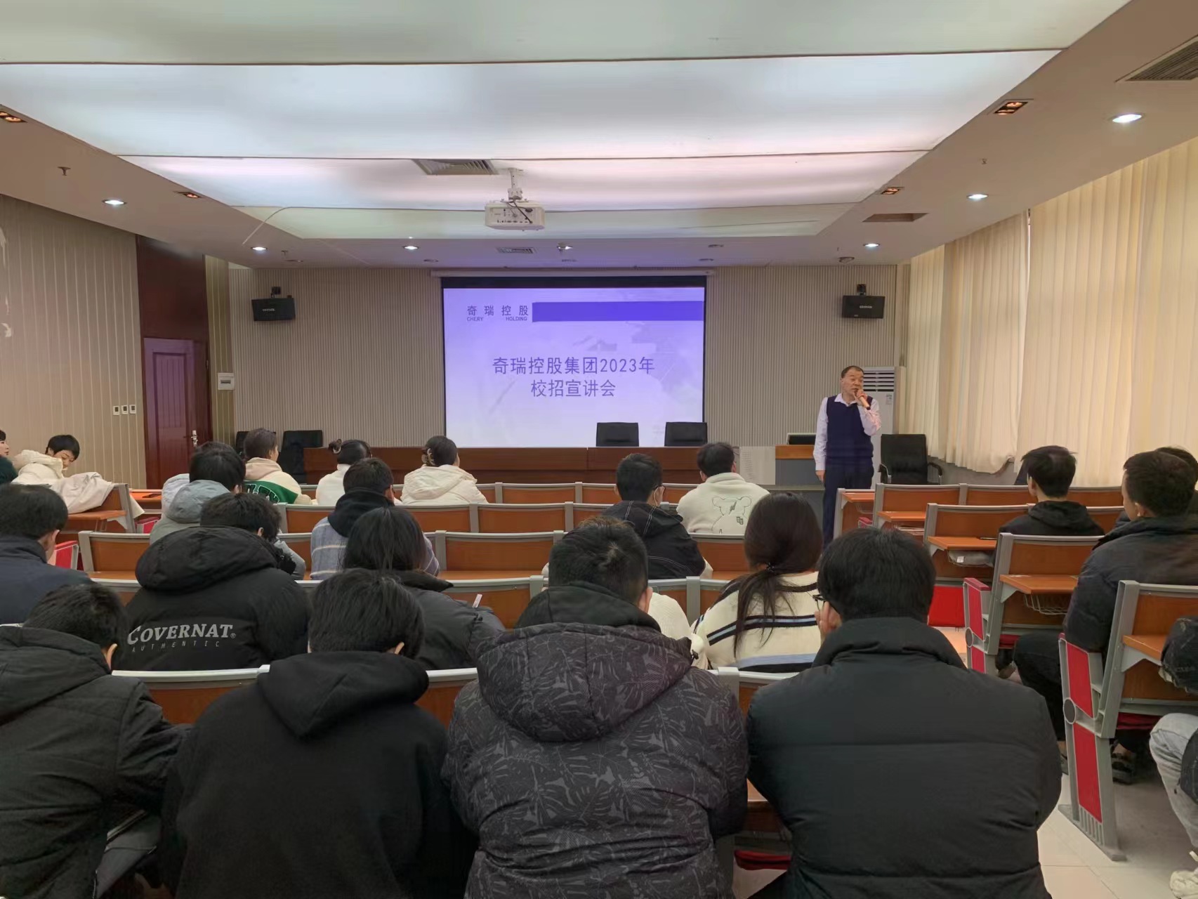 为进一步落实公司“访企拓岗促就业”行动,抓住2024届毕业生求职关键期,促进2024届毕业生高质量就业,太阳成集团tyc7111cc于12月14日邀请奇瑞汽车股份有限公司校招西北区主管张浩林一行三人来院举办企业招聘会专场宣讲会。 奇瑞控股集团有限公司创业始于1997年,从汽车制造业起家,旗下子公司奇瑞汽车是国内最早突破百万销量的汽车自主品牌。奇瑞控股集团通过整合全球资源,围绕汽车主业推进多元化发展,形成了汽车、汽车零部件、金融、地产、现代服务等业务,旗下拥有奇瑞汽车、奇瑞商用车、奇瑞汽金、奇瑞科技等300余家成员企业,业务遍布全球80多个国家和地区。截至目前,奇瑞集团累计全球汽车用户1250万,其中海外用户300万,连续20年位居中国品牌乘用车出口第一。
