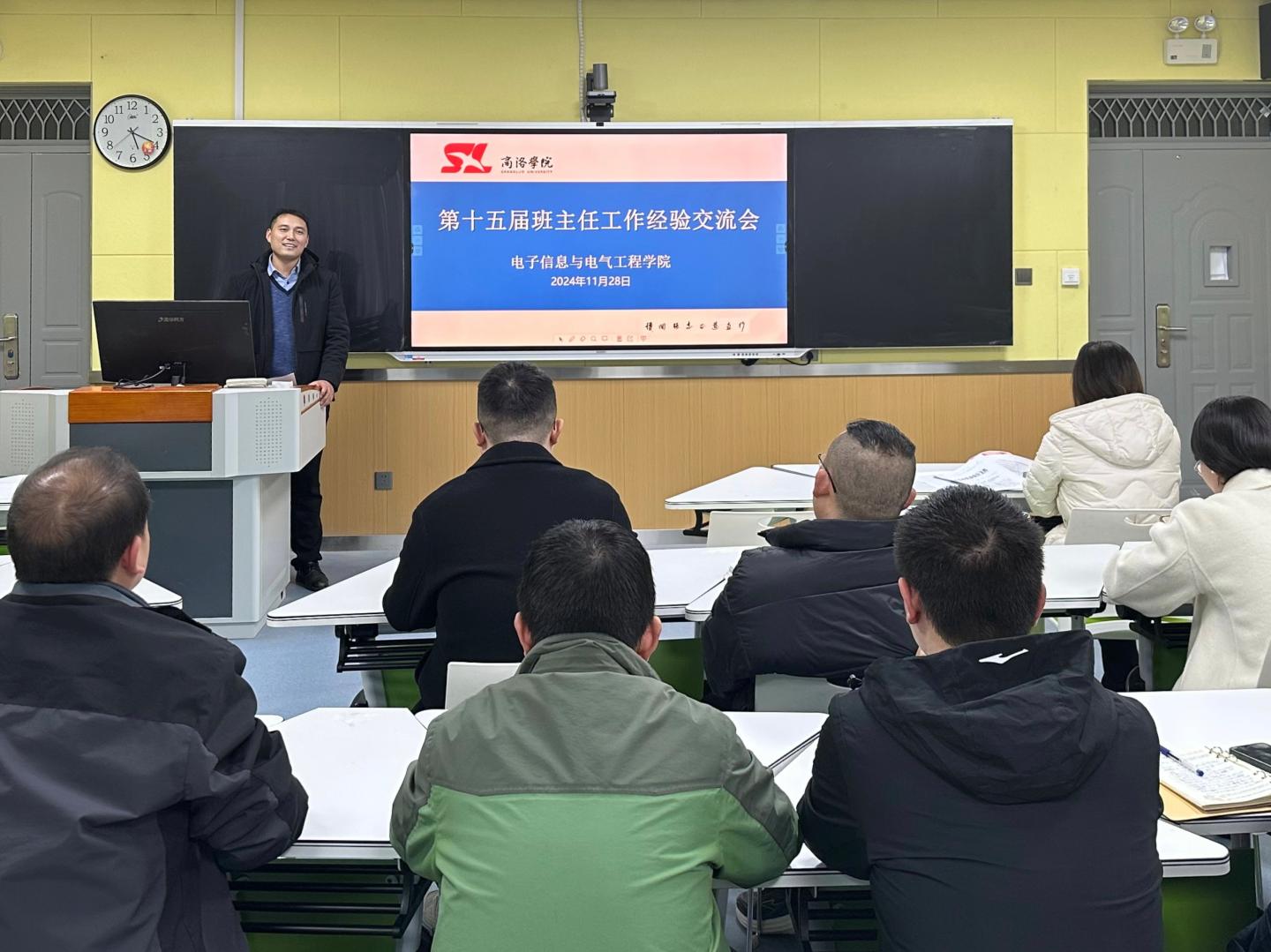 交流会上,孙静、李丽君、何建强、籍凡姝、柯希彪、韩军强、陈娇娇七位班主任作为代表进行交流发言。他们结合自身工作实践,从所带班级基本情况、班风学风建设、奖助学金评定、学科竞赛参与获奖、学业指导及就业帮扶等方面分享了各自工作经验。与会人员围绕班主任工作水平提升开展了讨论。