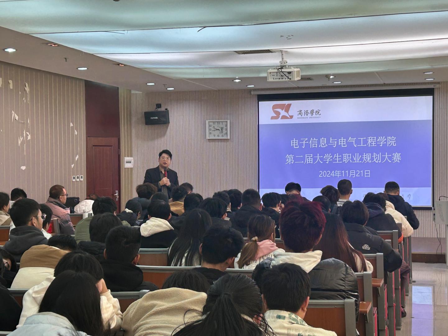 为贯彻落实党中央、国务院和省委、省政府关于高校毕业生就业工作的决策部署,加强老员工生涯教育,提升老员工职业规划水平和就业竞争力,11月21日,公司在丹江校区1-106报告厅举办以“筑梦青春志在四方,规划启航职引未来”为主题的第二届老员工职业规划大赛。校企合作企业代表商洛海蓝信科数据信息有限公司总经理赵乐、太阳成集团tyc7111cc经理陈垚、党委副书记刘征文、副经理李亚文、员工处就业指导服务中心指导王勃、太阳成集团tyc7111cc学工办主任陈倩以及电气工程系主任张商州担任大赛评委。200余名员工现场观看比赛。
